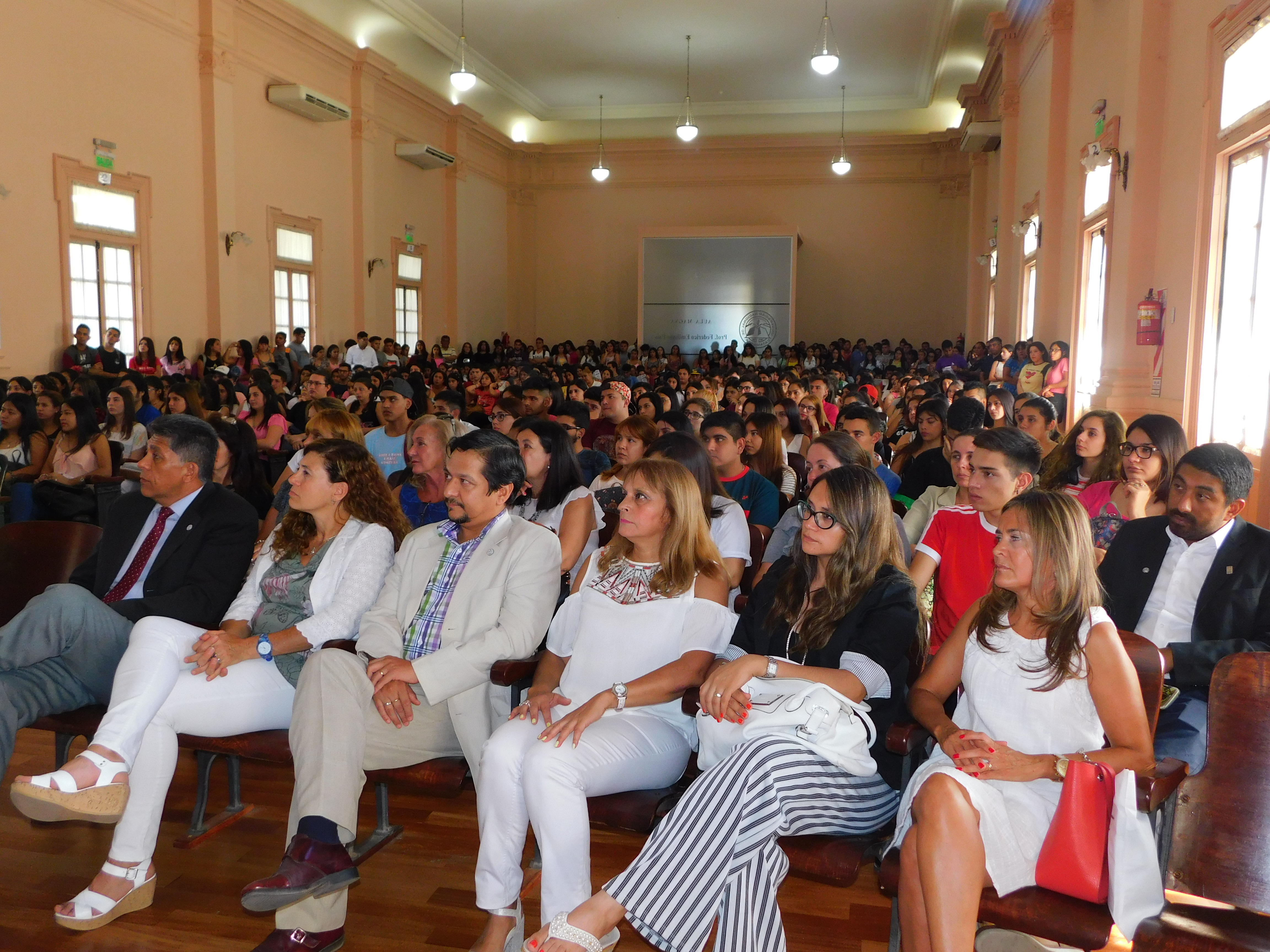Ante un aula Magna colmada autoridades de la facultad de Humanidades de la UNCA dieron la bienvenida a los 800 jóvenes que eligieron a la Universidad Nacional de Catamarca para su formación profesional.