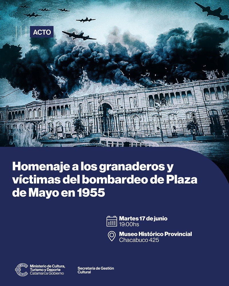 En el marco del 70º aniversario del bombardeo a Plaza de Mayo del 16 de junio de 1955, se realizará un conmemorativo en homenaje a las víctimas civiles y a los tres granaderos catamarqueños que defendieron la investidura presidencial durante aquel trágico episodio de la historia argentina.