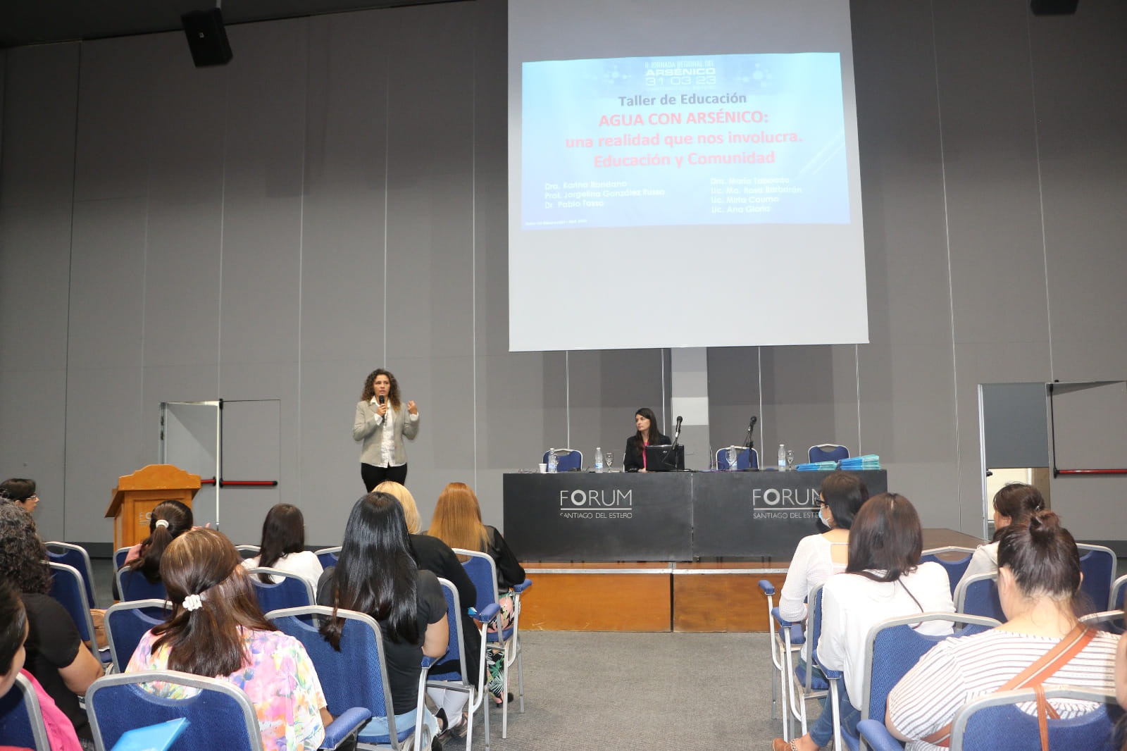 Durante el encuentro se abordaron temáticas como “Agua con arsénico: una realidad que nos involucra”, “Metodologías analíticas para la determinación y especiación de arsénico en aguas”, “Experiencias y propuestas de remediación del Arsénico en agua de consumo humano en la provincia de Santiago del Estero”, “Hidroarsenicismo Crónico Regional Endémico (Hacre) Contexto Socio Económico, Culturales y Ambientales que influyen en el Hidroarsenicismo”, Hidrogeoquímica y presencia del arsénico en la Región”.