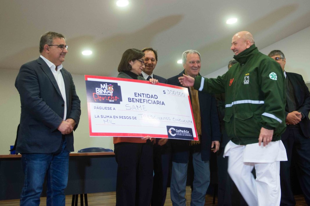 En el Salón Exequiel Soria, la Gobernadora Lucía Corpacci encabezó el acto de entrega de aportes “Mi Bingo Catamarqueño” a entidades beneficiarias del sorteo realizado en el mes de julio pasado, en especial al SAME. En la oportunidad se anunció que Capresca donará dos ambulancias para el servicio de emergencia.