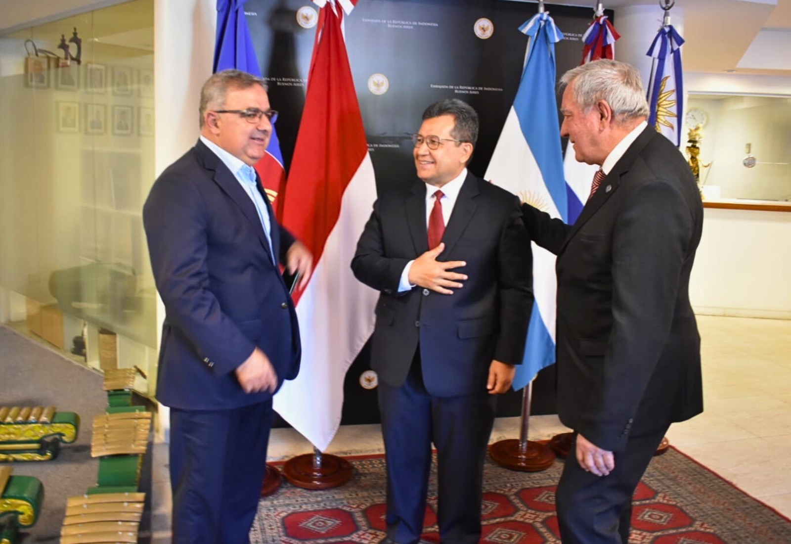 El gobernador Raúl Jalil, acompañado por el vicegobernador Rubén Dusso, visitó este jueves la Embajada de Indonesia en la Ciudad de Buenos Aires, donde se reunió con el embajador Sulaiman Syarif.