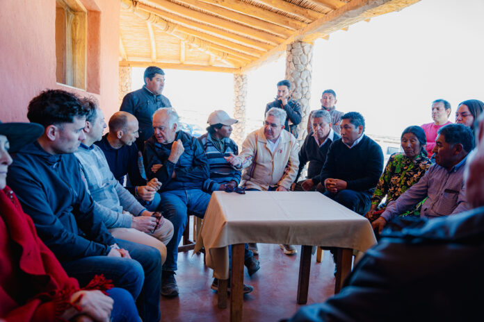 En la localidad de Laguna Blanca, se llevó a cabo una importante reunión entre el gobernador Raúl Jalil, las comunidades de la Puna, el ministro de Inclusión Digital y Sistemas Productivos, Juan Cruz Miranda, y representantes de la empresa Loro Piana, un actor clave en la compra de fibra de vicuña a nivel internacional. Por parte de la reconocida firma italiana participaron Adolfo Bottari, representante en Sudamérica; Manuela Carletti, responsable de compras de fibra; y Eric Darrieus, director de operaciones.