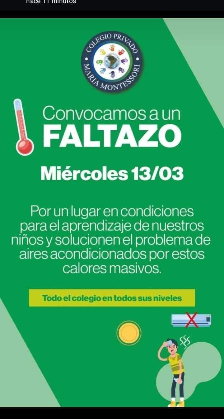 Alumnos y padres de los distintos colegios privados del Valle Central iniciaron una campaña en las redes sociales, convocando a un «faltazo» masivo para hoy miércoles 13 de marzo.