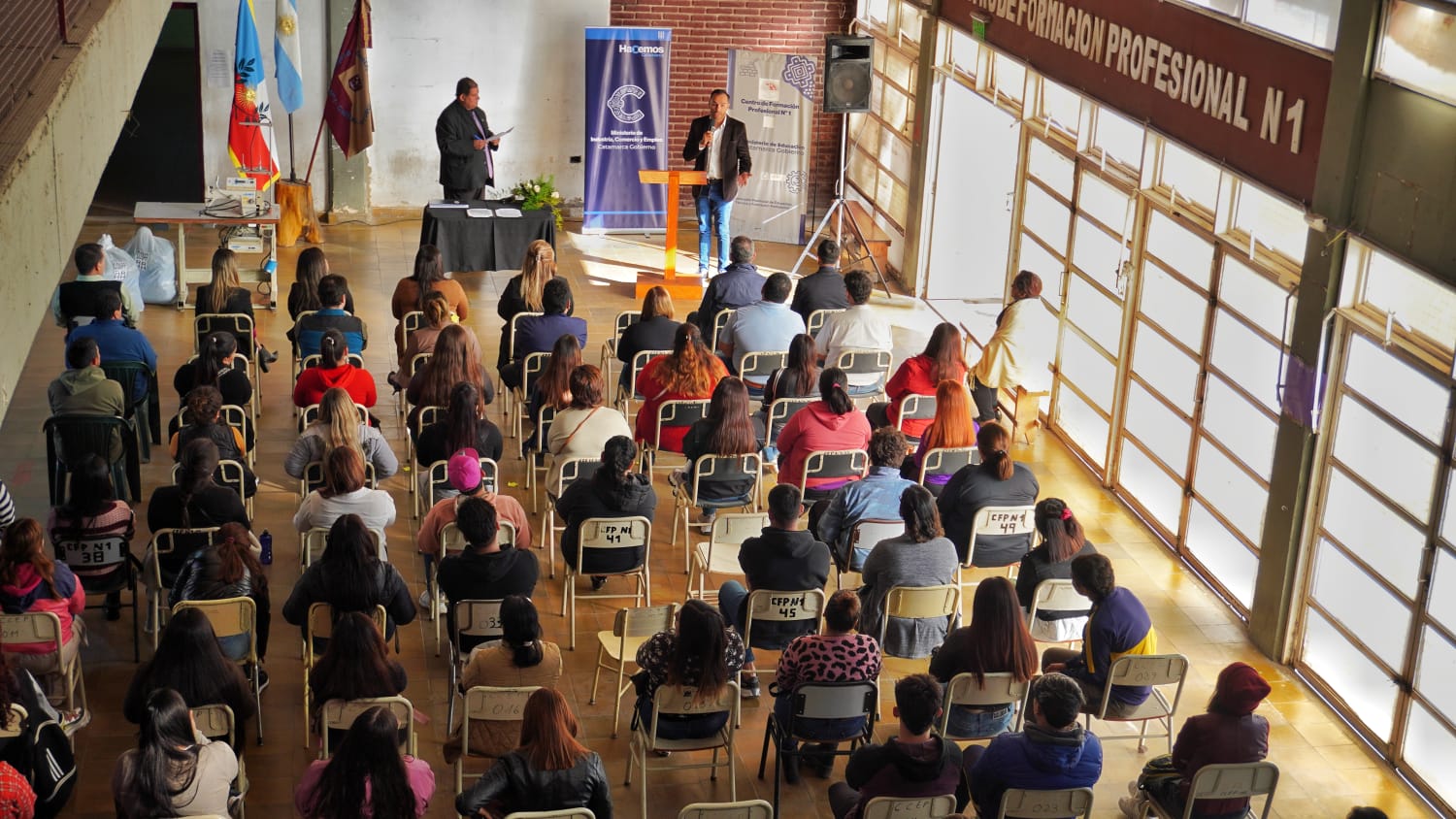 El acto se desarrolló en el Centro de Formación Profesional N° 1, con las presencias de nuevos alumnos, directivos del establecimiento, funcionarios del área de Discapacidad del Ministerio de Salud, de empleo municipal y empresarios de importantes plantas textiles y de la confección, entre ellas Confecat e Indumentaria Catamarca.