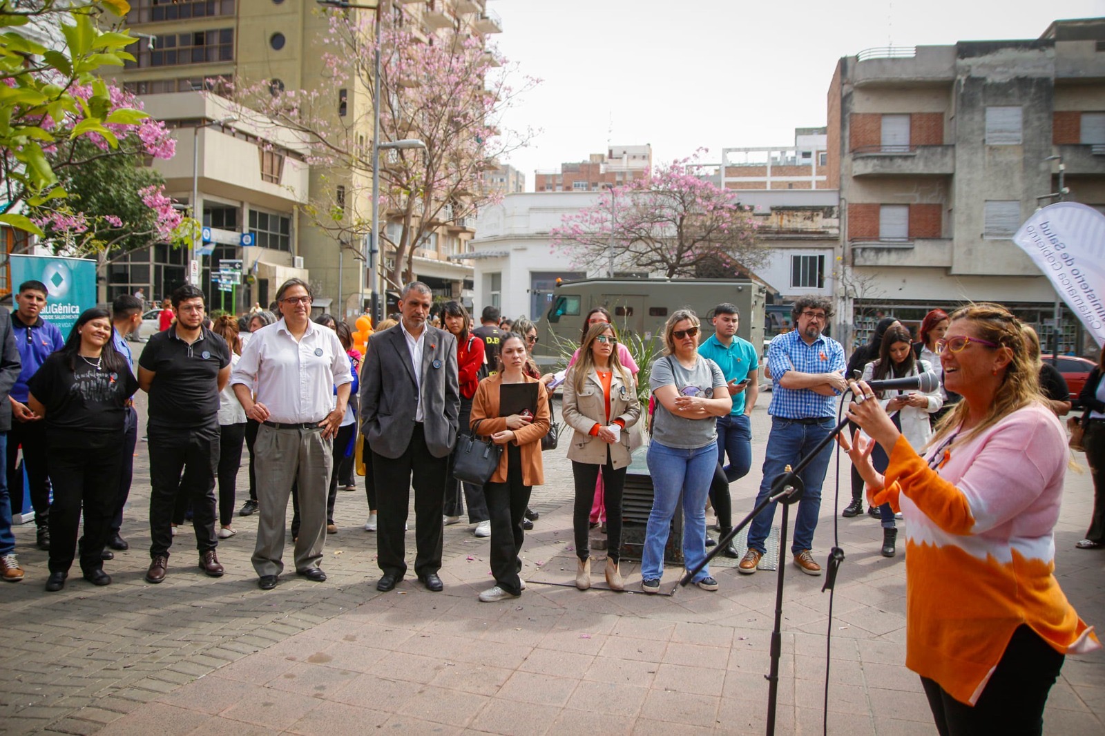 Hoy se llevó a cabo un espacio de sensibilización y socialización por parte de la Mesa Intersectorial de Suicidio (MINTERSIU), con stands informativos, radio abierta y números artísticos en la Plaza 25 de Mayo, en la capital provincial.