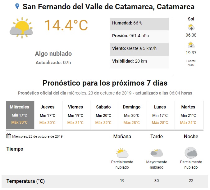El Tiempo en Catamarca