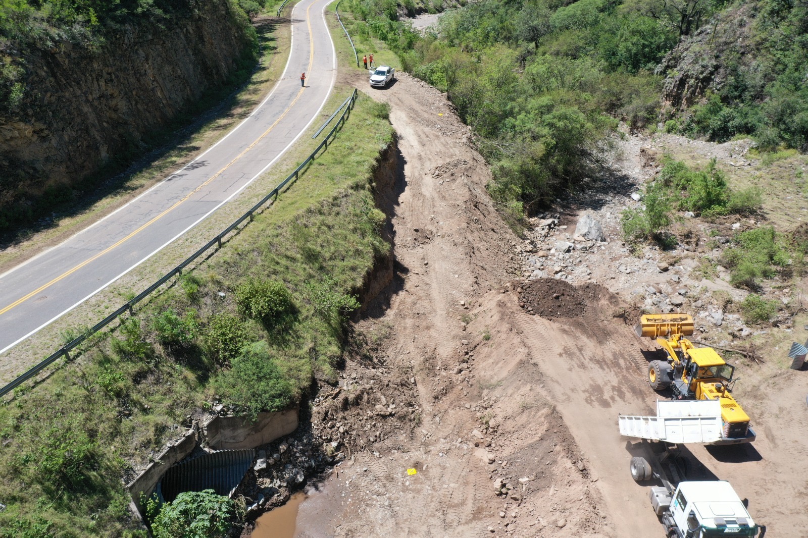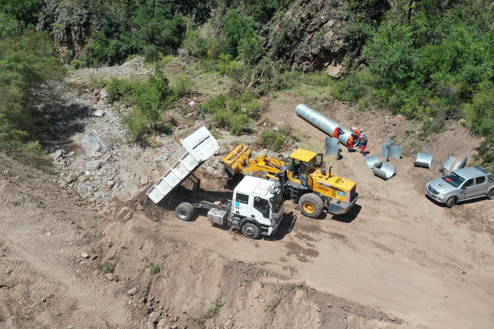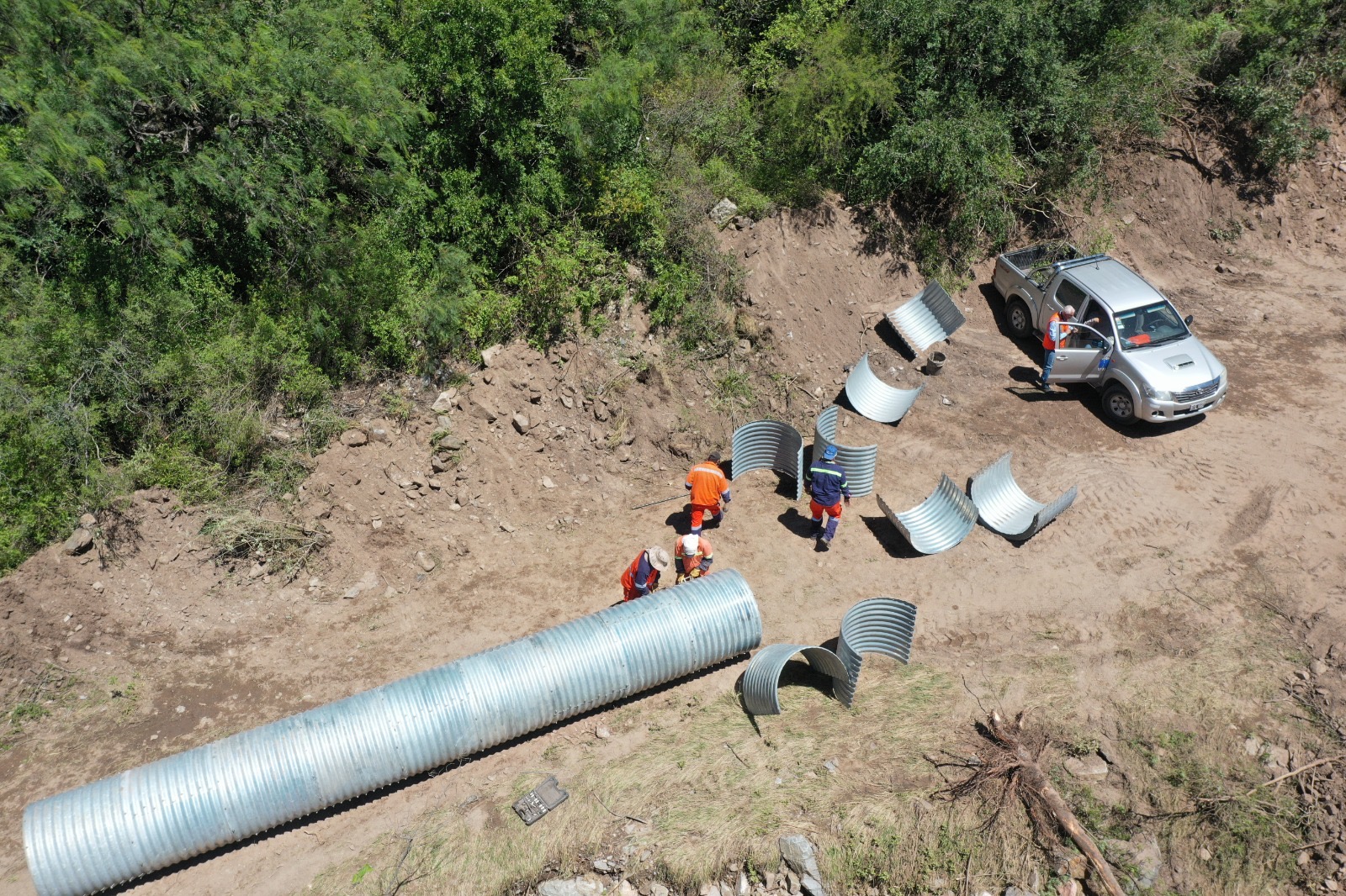 Los trabajos demandan un importante movimiento de suelo para la construcción de un terraplén y el armado de una alcantarilla de chapa provisoria que permita el paso del agua ante eventuales lluvias que pudieran producirse en la zona.