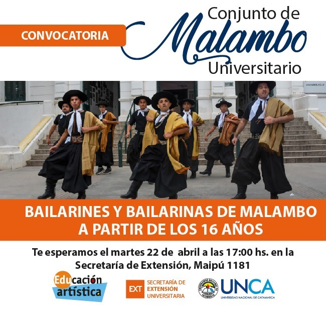 El Conjunto de Malambo, de la Secretaría de Extensión de la UNCA, abrió la convocatoria para bailarines que deseen formar parte del staff temporada 2025. El mismo se encuentra bajo la dirección del Prof. Antonio Costilla.
