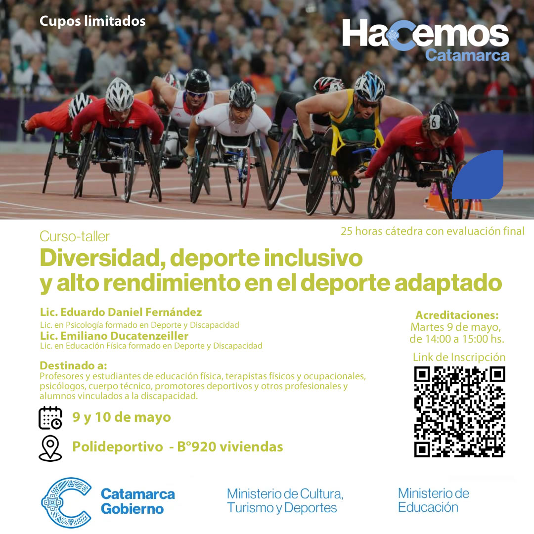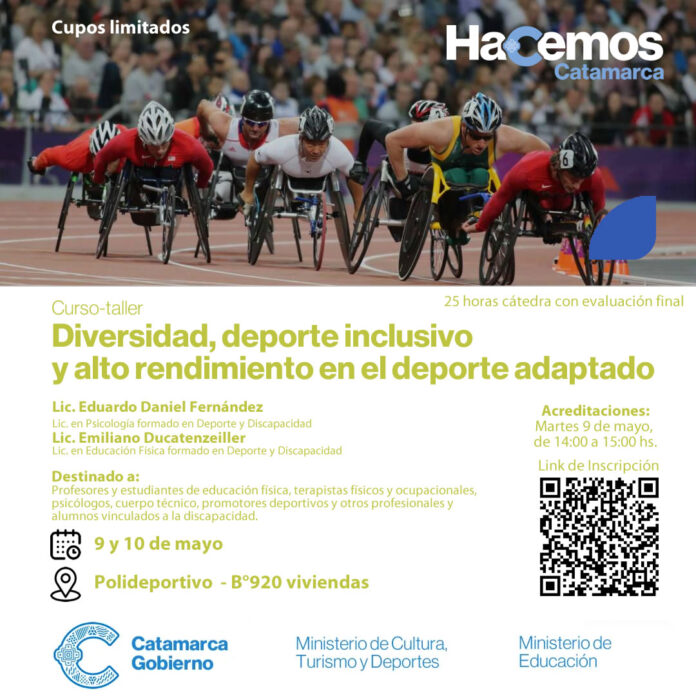 El Ministerio de Educación a través de la Dirección de Educación Física, Salud, Deporte y Recreación y de manera conjunta con la Secretaría de Deportes dependiente del Ministerio de Cultura, Turismo y Deporte, llevará a cabo el curso-taller “Diversidad, deporte inclusivo y alto rendimiento en el deporte adaptado”: Aportes técnicos para el ámbito educativo”. El mismo, se realizará los días 9 y 10 de mayo.