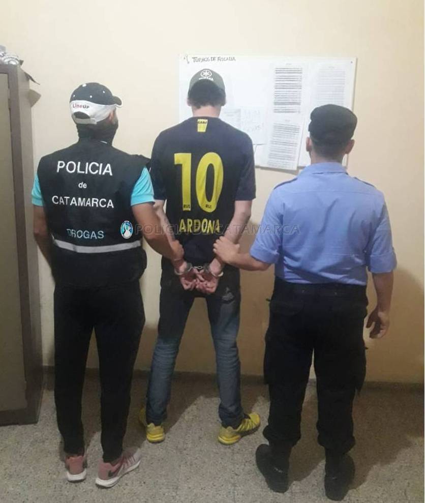 Anoche, a las 20:00, efectivos del Grupo Antinarcóticos de Unidades Regionales (GAUR ESTE) de Recreo, perteneciente a la Dirección Drogas Peligrosas de la Policía de la Provincia, conjuntamente con personal de la Comisaría de Los Altos, llegaron hasta el barrio Obrero de esa localidad del Departamento Santa Rosa, y procedieron a la detención de un joven de 25 años de edad, sobre quien obraba un requerimiento Judicial ordenado por el Juzgado Federal, a cargo del Dr. Miguel Ángel Contreras, por una supuesta infracción a la Ley Nacional de Estupefacientes N° 23.737.