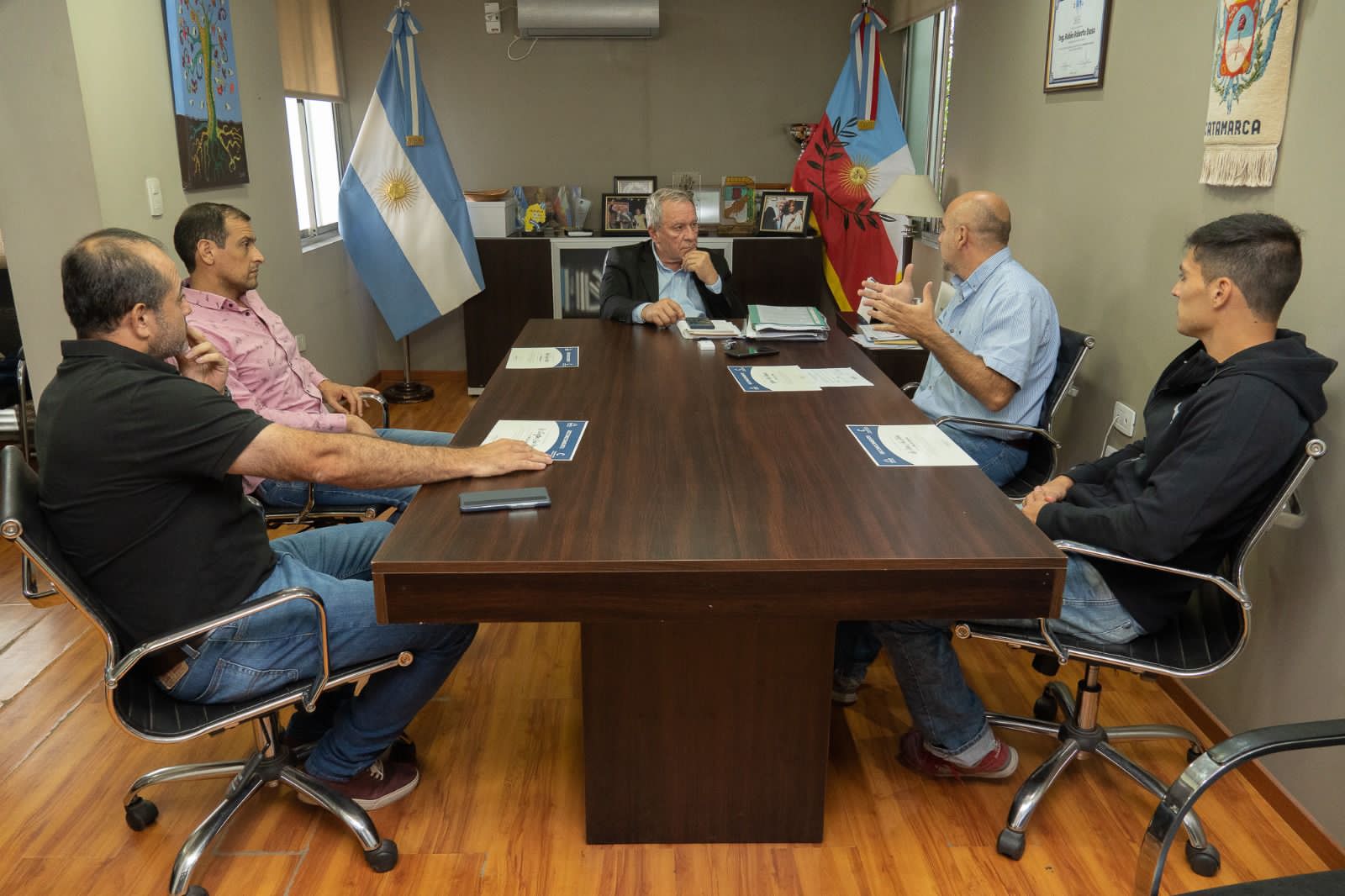 En el marco del Día del Kinesiólogo el vicegobernador Rubén Dusso se reunió junto a los profesionales locales; Juan Manuel Guaytima, Rodrigo Vildoza, José Las Heras, Luis pintos y Pablo Lagoria, dependientes de la Dirección Provincial de Rehabilitación Deportiva, quienes recibieron una declaración de Interés Parlamentario por su labor dentro del ámbito catamarqueño, acompañando a los deportistas de la provincia durante su práctica.