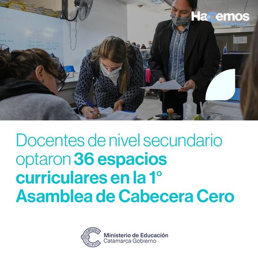 El Ministerio de Educación a cargo de Andrea Centurión, a través de la Secretaría de Gestión Educativa, llevó a cabo la primera Asamblea Cabecera Cero del año para la cobertura de horas cátedra interinas y/o suplentes en el nivel secundario, en todas sus modalidades. La misma, se realizó durante la jornada de ayer y fue presidida por la Junta de Clasificación de Enseñanza Media, Técnica y Artística.