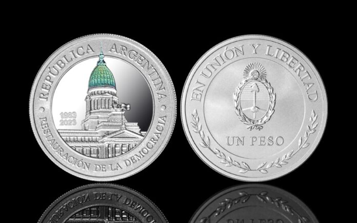 El Banco Central de la República Argentina (BCRA) emitió una moneda de plata conmemorativa del 40° Aniversario de la Restauración de la Democracia 1983-2023.