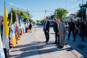 Acompañado por el intendente Luis Polti, el mandatario provincial presidió el acto central conmemorativo, donde destacó la historia y el crecimiento de la ciudad de Recreo.