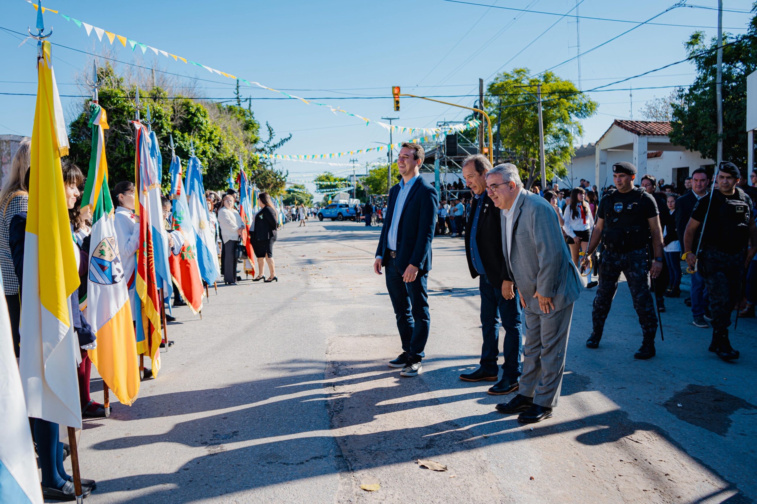 Como parte del cierre de las celebraciones, el Gobernador participó del tradicional desfile cívico, que contó con la participación de instituciones educativas, organizaciones locales y vecinos de toda la jurisdicción.