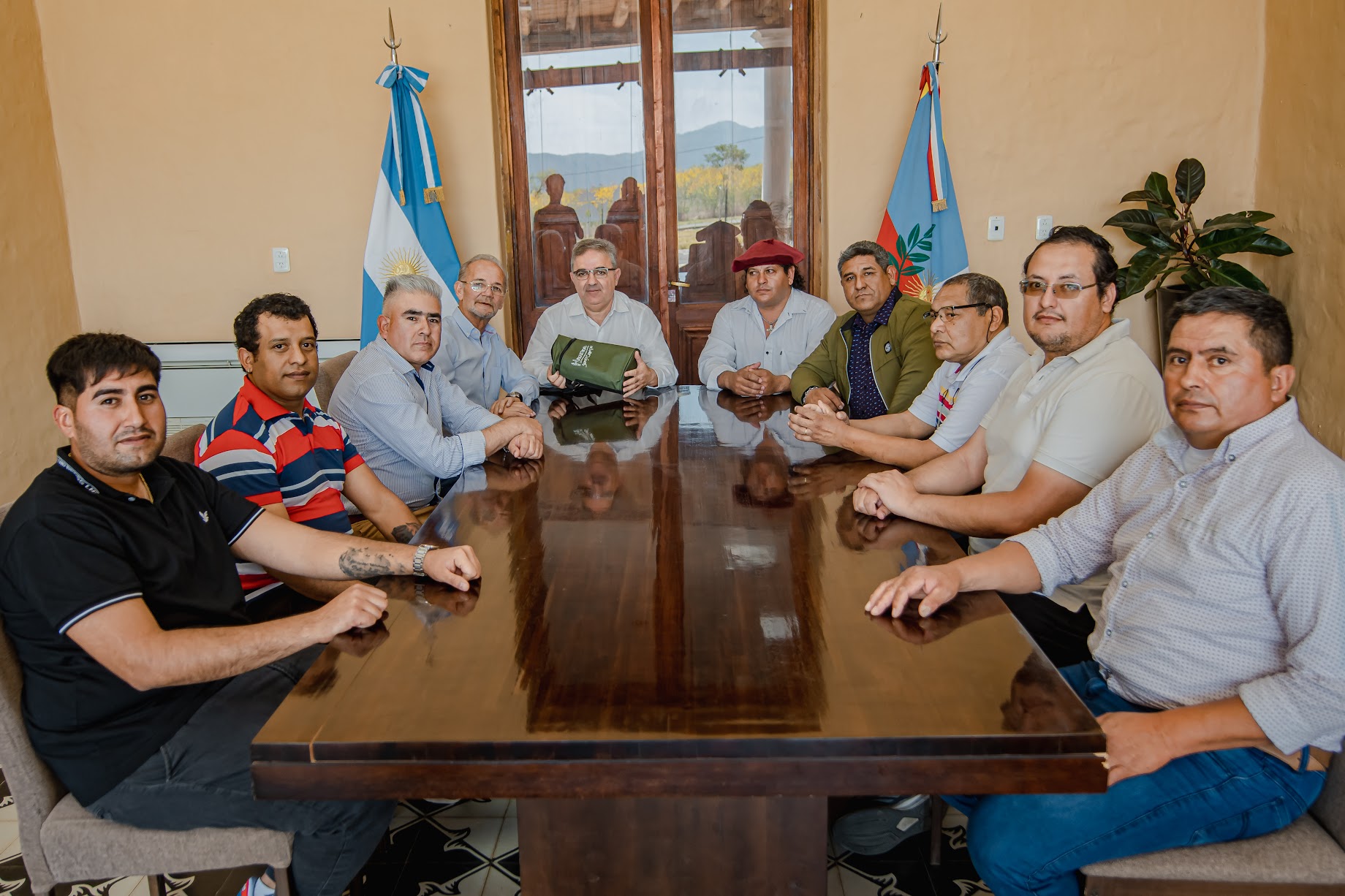 Estuvieron en el encuentro con el gobernador Jalil, Enrique Cowes, delegado del RENATRE, Ariel Coronel, delegado de UATRE, y los secretarios generales del Registro Nacional de Trabajadores Rurales y Empleadores de distintas localidades cómo Los Altos, La Paz y Pomán.