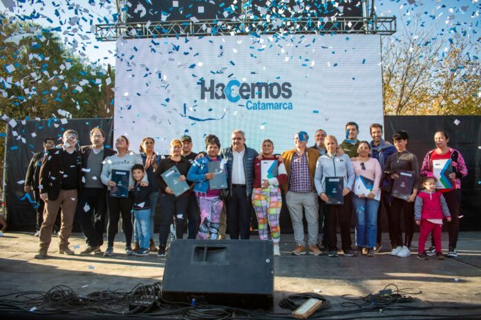El gobernador Raúl Jalil participó este viernes de la entrega de más de 1.100 decretos de adjudicación de posesión definitiva de viviendas a vecinos de los barrios Virgen del Valle, Virgen Niña, Los Médanos, Villa Eumelia, Montecristo y parte de Cristo Rey, ubicados en la zona sur de la ciudad capital.