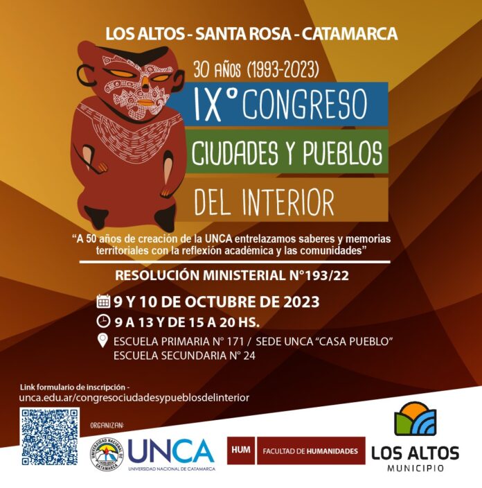 Organizado por la Facultad de Humanidades de la UNCA, el próximo lunes dará inicio en la localidad santarroseña de Los Altos el IX Congreso de Ciudades y Pueblos del Interior. El evento, que culminará el martes, se desarrollará en la sede “Casa Pueblo” y en escuelas de la localidad.