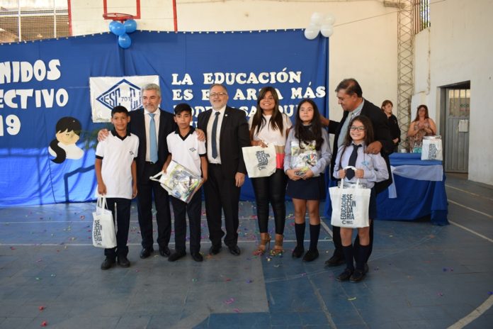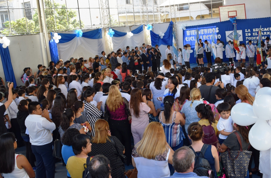El ministro de Educación, Ciencia y Tecnología de la provincia, Daniel Gutierrez, acompañado por el presidente de la Cámara de Senadores a cargo de la Gobernación, Jorge Solá Jais, el senador por el departamento Antofagasta de la Sierra, Mario Carrizo, la jefa de Gabinete de Educación, Belkys Vera, subsecretarios, directores de la cartera educativa, equipos directivos, docentes, padres y alumnos dejó oficialmente inaugurado el Ciclo Lectivo 2019 para todas las escuelas de la provincia.