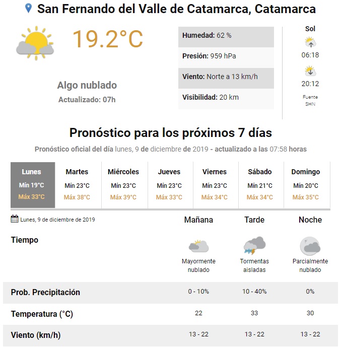 La semana comienza con tiempo estable. Durante este lunes se espera una máxima de 33°C, con el cielo ‘mayormente nublado’.