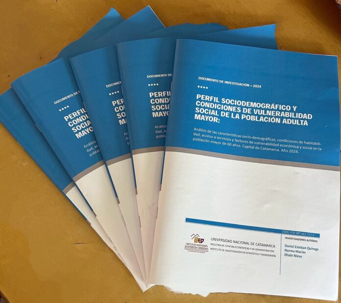 El documento presentado contiene valiosa información técnica acerca de la realidad que vive este sector vulnerable de nuestra sociedad catamarqueña y sirve como marco de consulta para que los distintos organismos que aplican políticas activas en favor del sector lo tomen como fuente confiable para planificar y ejecutar las acciones necesarias que mejoren las condiciones de vida de los adultos mayores. Asimismo, configura un perfil sociodemográfico y define en qué aspectos se estima vulnerable la población en estudio. Según informó el IIED, el documento puede ser consultado en el link https://drive.google.com/file/d/104uF9ZCV83eKdvsZK3keqa-Gg5GnMfhO/view?usp=drive_link