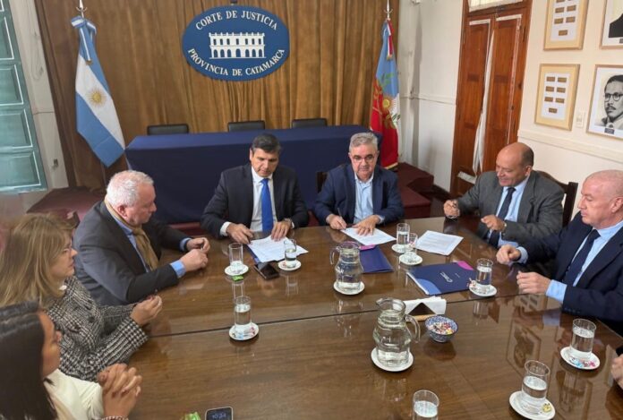 Participaron de la firma, el gobernador Raúl Jalil, el Vicegobernador Rubén Dusso, la Presidenta de la Cámara de Diputados Paola Fedelli, el Presidente de la Corte de Justicia Hernán Martel; los ministros de la Corte Rita Verónica Saldaño, Fabiana Gómez, Rafael Bracamonte y Miguel Figueroa Vicario y el Ministro de Gobierno, Seguridad y Justicia Fernando Monguillot.