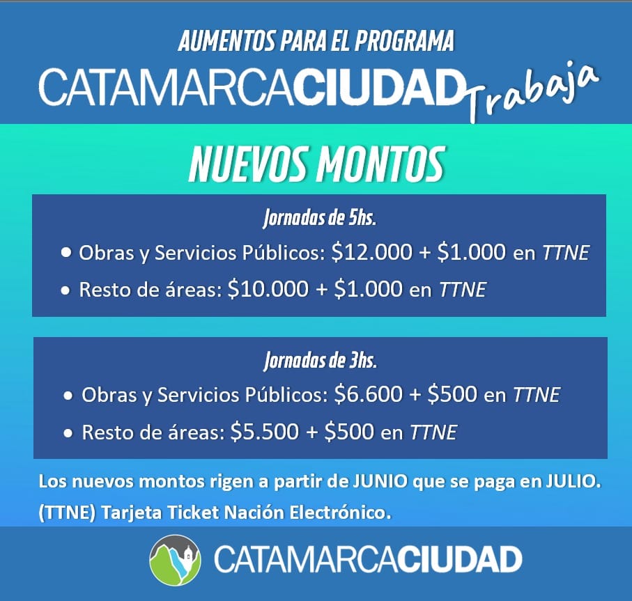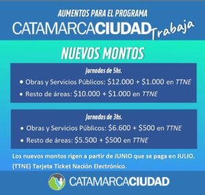 Días atrás, la Municipalidad de la Capital dio a conocer el aumento de un 10% para los beneficiarios del Programa ‘Catamarca Ciudad Trabaja’ a partir del mes de junio.