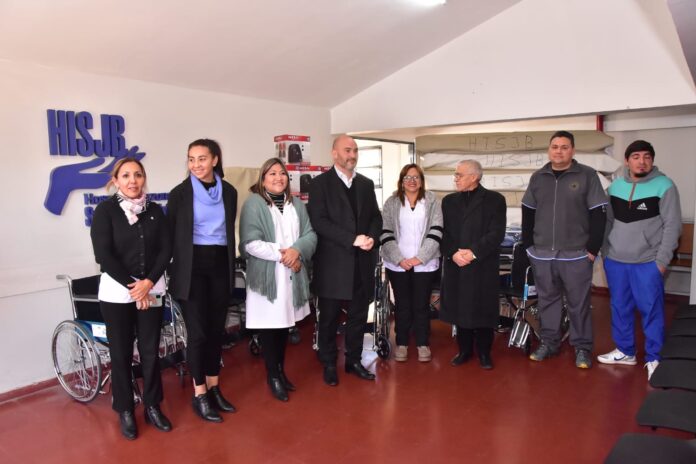 Junto a la secretaria de Asistencia en Salud Pública, Johana Carrizo, el Ministro entregó 4 camillas, 5 sillas de ruedas y 40 colchones. Además, se entregaron 1 computadora, 1 freezer, 6 caloventores y ropa de cama, destinados a fortalecer la atención de los pacientes.