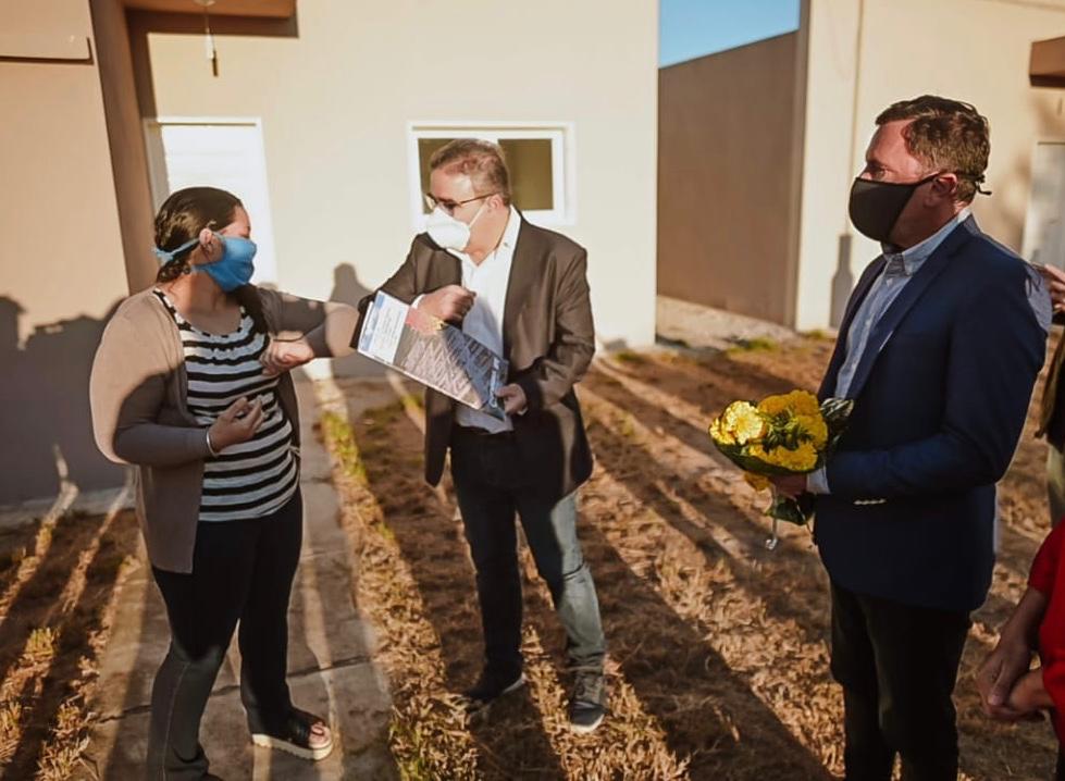 Además de la entrega de esta tarde, Sáenz informó que mañana jueves se hará una entrega de diez nuevos hogares en la localidad de El Alto.