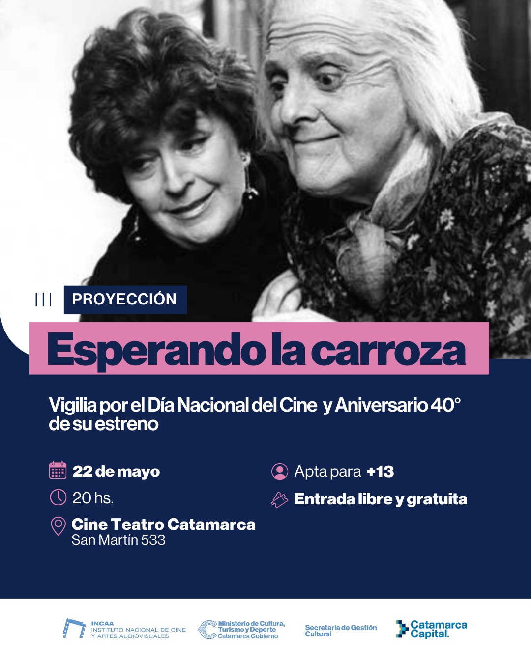 Esperando la Carroza fue dirigida por Alejandro Doria y está basada en la obra teatral del dramaturgo uruguayo Jacobo Langsner. Esta comedia de humor negro, ambientada en un típico domingo familiar argentino, gira en torno a la desaparición de Mamá Cora, una abuela de 80 años. A partir de este hecho, se desencadena una sucesión de enredos, discusiones y revelaciones que habilitan una crítica social sobre el abandono de los adultos mayores, la hipocresía familiar y las tensiones de clase.