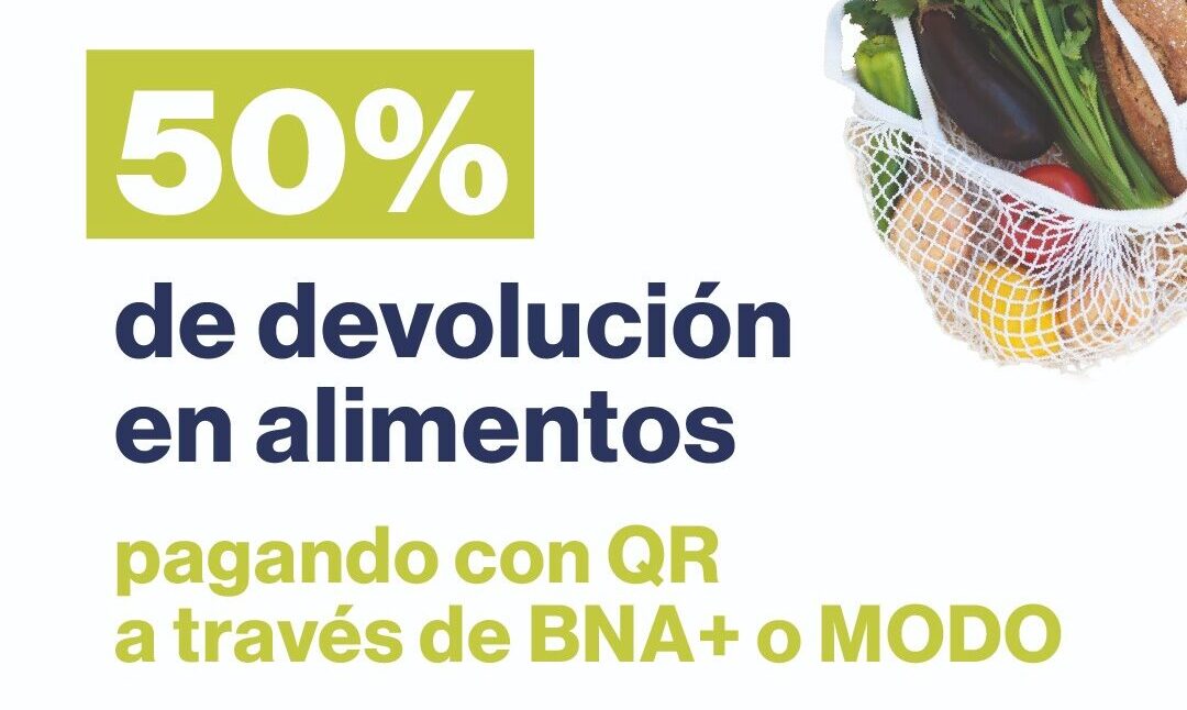 El Ministerio de Economía informa que desde el lunes 10 al domingo 16 de marzo se llevará a cabo una nueva edición del One Shot Plus Alimentos, con descuentos del 50% en la compra en comercios locales adheridos con tarjetas de débito y crédito del Banco Nación Argentina a través del escaneo de código QR de Modo BNA y BNA+.
