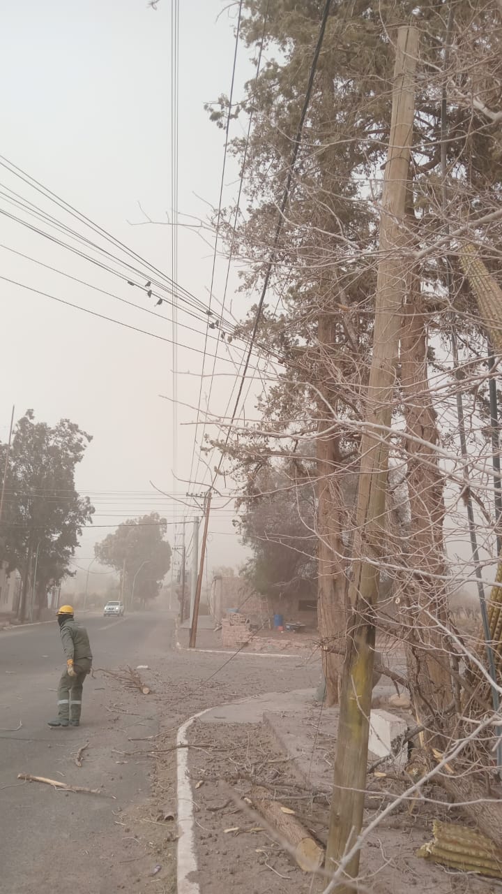 En Pomán también se registran fuertes ráfagas en todo el departamento, por lo que algunas escuelas están suspendiendo las actividades áulicas debido a los reiterados cortes de energía eléctrica.
