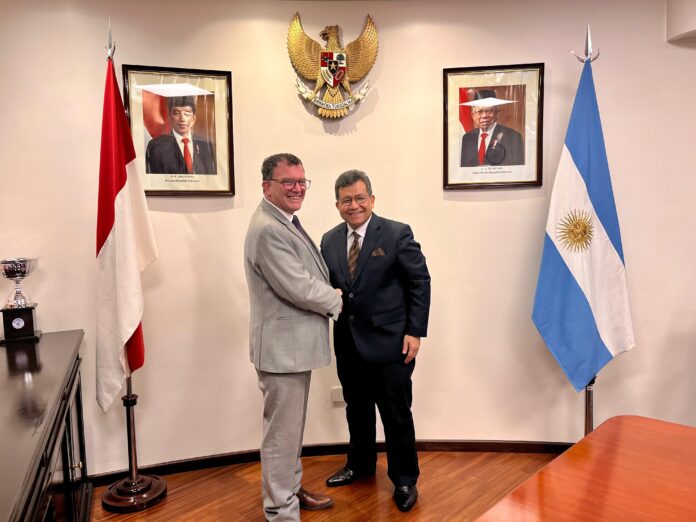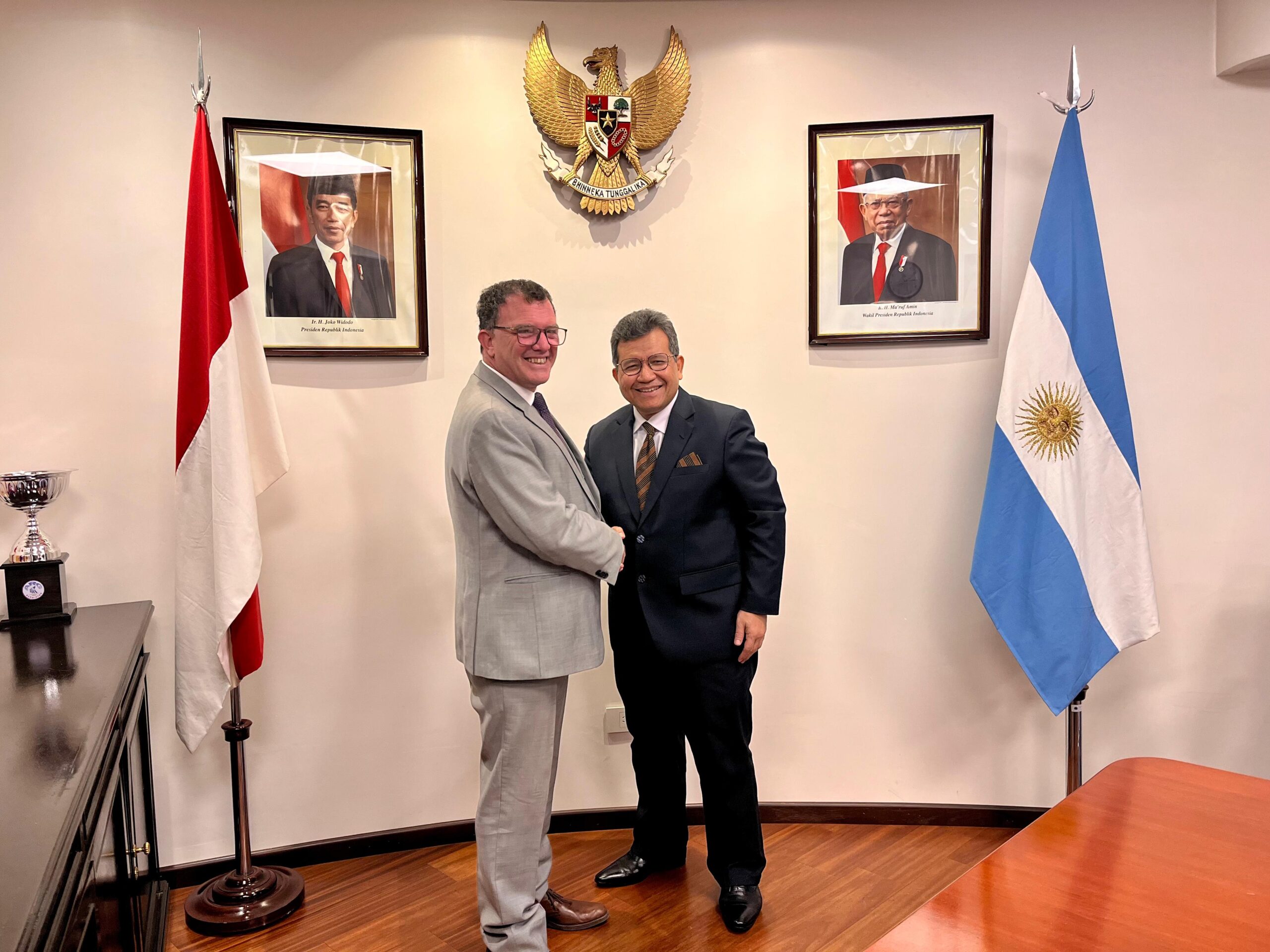 Los vicepresidentes de FOGACAT SAPEM y CAMYEN SE, Eduardo Castagnola y Natalia Dusso, fueron recibidos ayer por el embajador de Indonesia Sulaiman Syarif en la sede diplomática que el país asiático tiene en la Ciudad Autónoma de Buenos Aires.