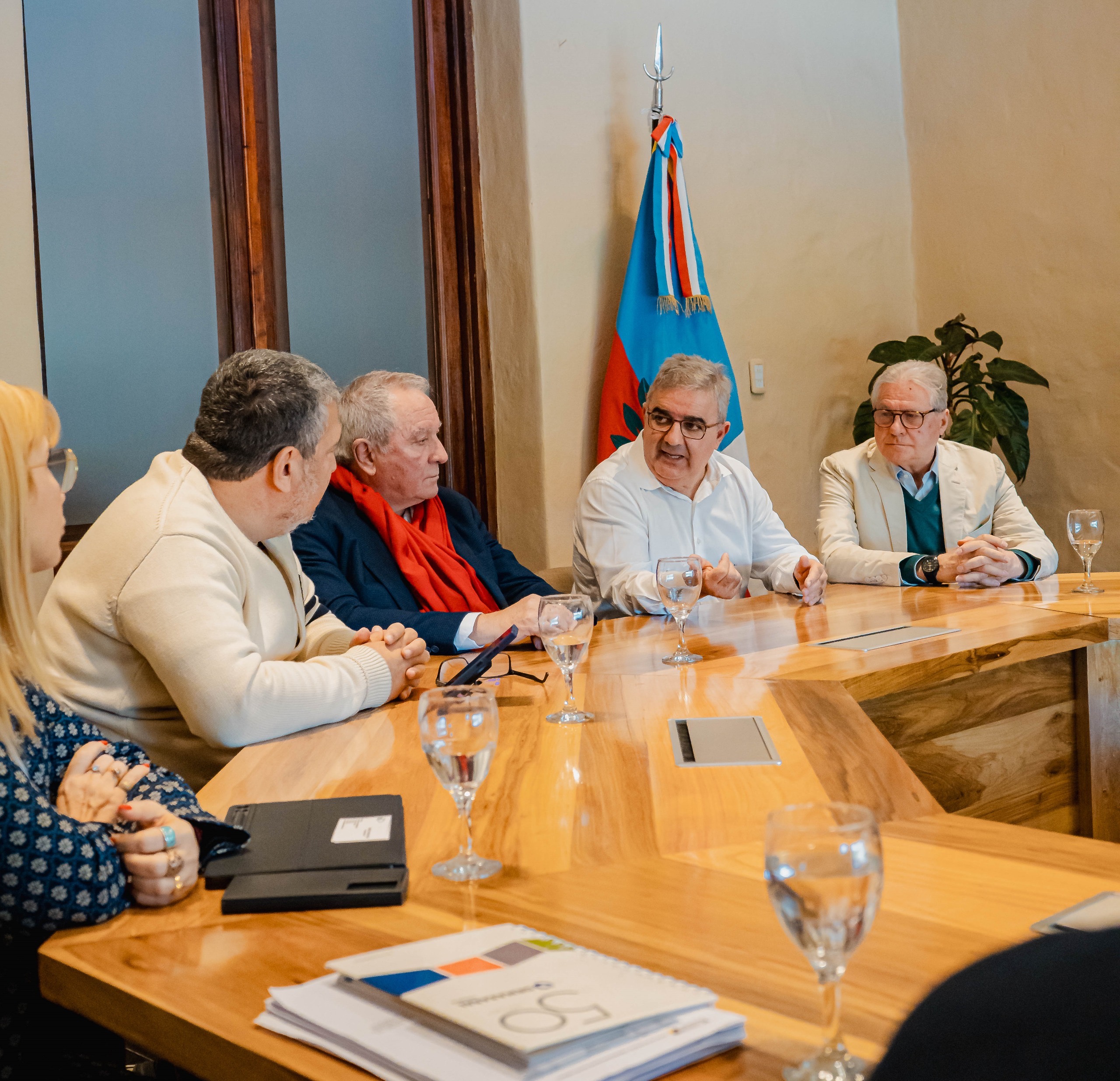 Participaron de la reunión el vicegobernador Rubén Dusso; el ministro de Agua, Energía y Medio Ambiente, Eduardo Niederle; Darío Febre, vicepresidente para desarrollo de Latinoamérica de Ashmore; Heber Galindo, gerente operativo de Ashmore Holding; Gonzalo Gauna, gerente general de Tozzi Green Tinogasta, y Ángelo Coppacchioli, director general de la empresa Tre Perú.