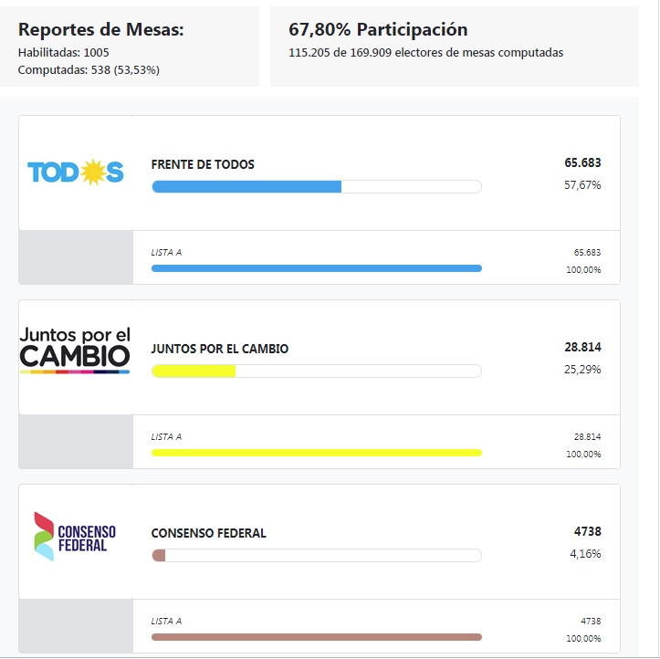 Hasta el momento, en San Fernando del Valle, Saadi sacó 14.541 votos (70,48%) por encima de los 5.627 (27,27%) de Flavio Fama.