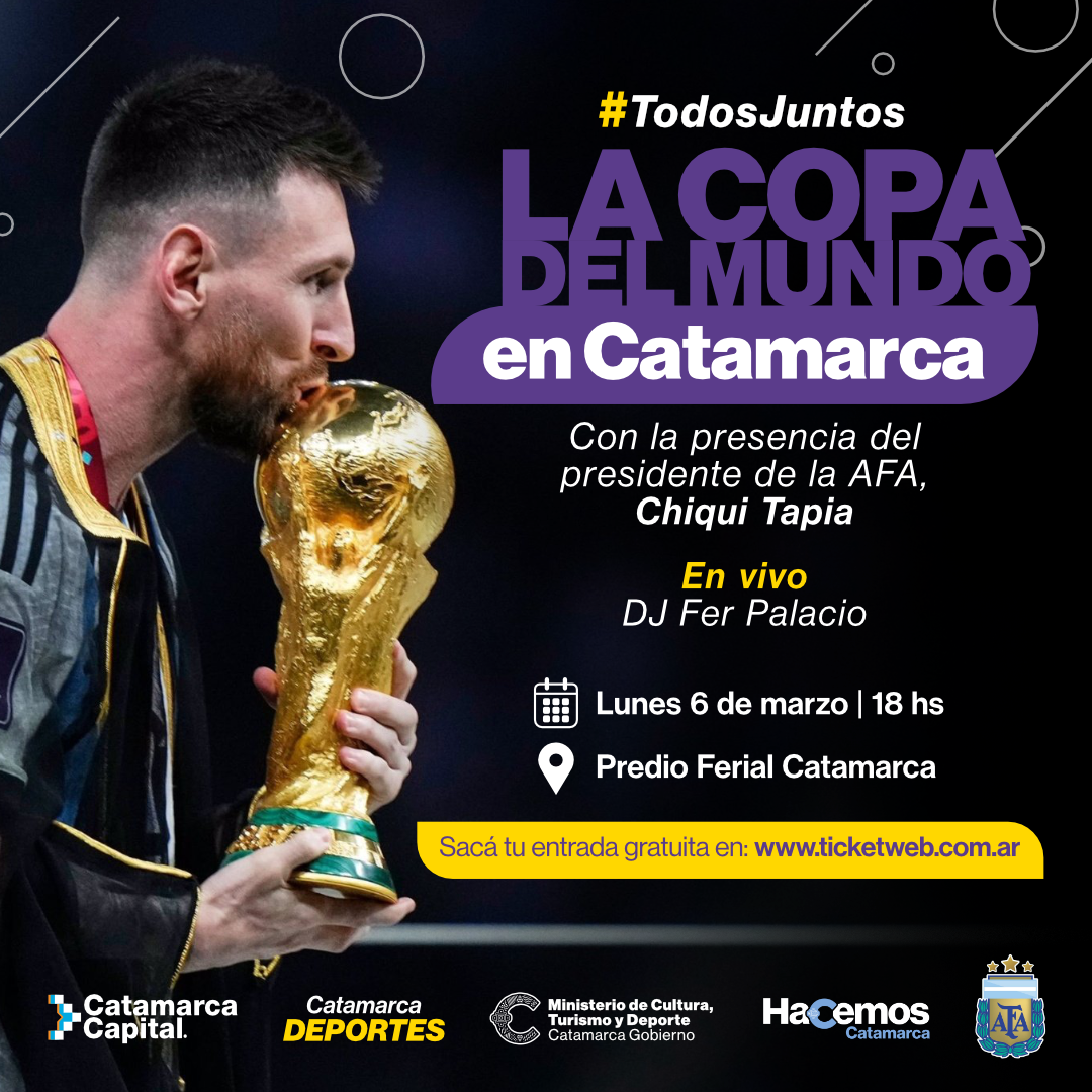 El presidente de la Asociación del Fútbol Argentino Claudio Fabián “Chiqui” Tapia, vuelve a la provincia de Catamarca el próximo lunes 6 de marzo, acompañado de la Copa del Mundo lograda por la selección mayor el pasado 18 de diciembre en el mundial de Qatar 2022, luego de 36 años.