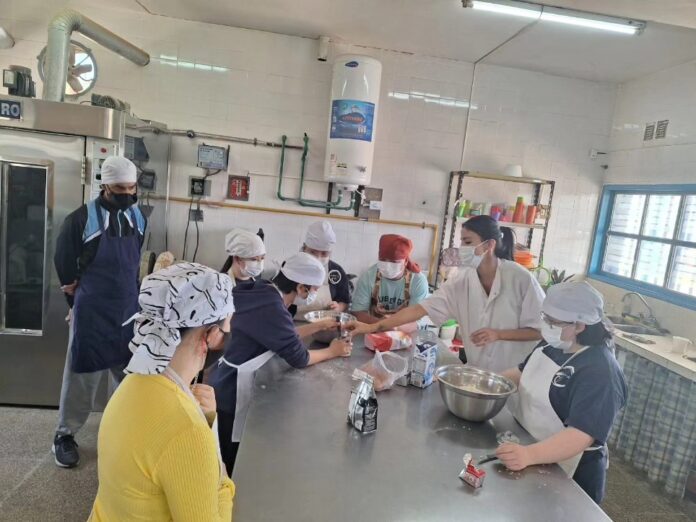 Con los alumnos del sector de Panificación, desarrollaron el taller de «Panificación y Levaduras» mediante un sencillo experimento que permitió comprender el funcionamiento de las levaduras.