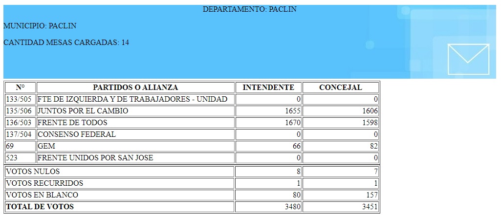 La página del Juzgado Electoral Nacional, da estos guarismos: