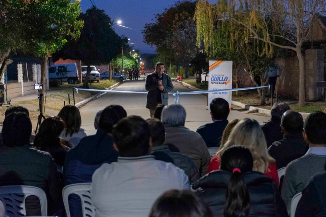 En la tarde de este domingo, el intendente Guillermo Ferreyra, acompañado por miembros del ejecutivo municipal, el senador Oscar Vera, la diputada Verónica Mercado y los vecinos, dejaron inaugurado 20 cuadras de asfalto y el recambio de luminarias LED.