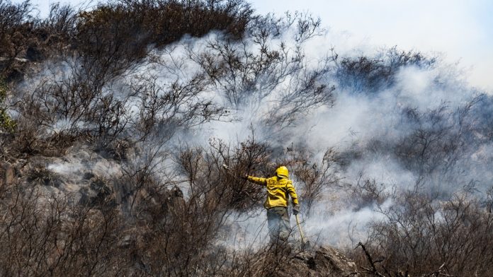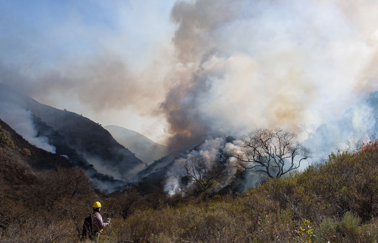 Luego de sofocar el incendio forestal en la zona de la sierra de Los Ángeles, las cuadrillas de la Brigada de Lucha Contra Incendios Forestales debieron trasladarse hacia la “Quebrada de El Tala” donde la cola del incendio que azota hace ya casi una semana al cordón montañoso del Ambato, continua activo.