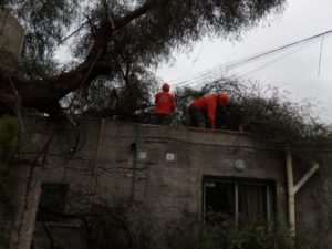 “Desde la llegada del viento todo nuestro personal estuvo en alerta y asistió a varios lugares sobre todo por la caída de árboles que impedían la normal circulación en diferentes arterias de la ciudad, pero en ningún caso se reportaron personas lesionadas”, manifestó Martín Castelli, director de Defensa Civil.