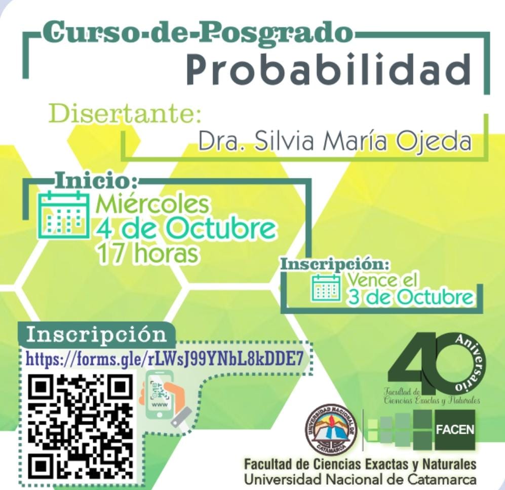 La Secretaría de Investigación y Posgrado de la Facultad de Ciencias Exactas y Naturales de la UNCA invita a tomar parte de los cursos de Posgrado que se dictarán en el año en curso y en 2024.