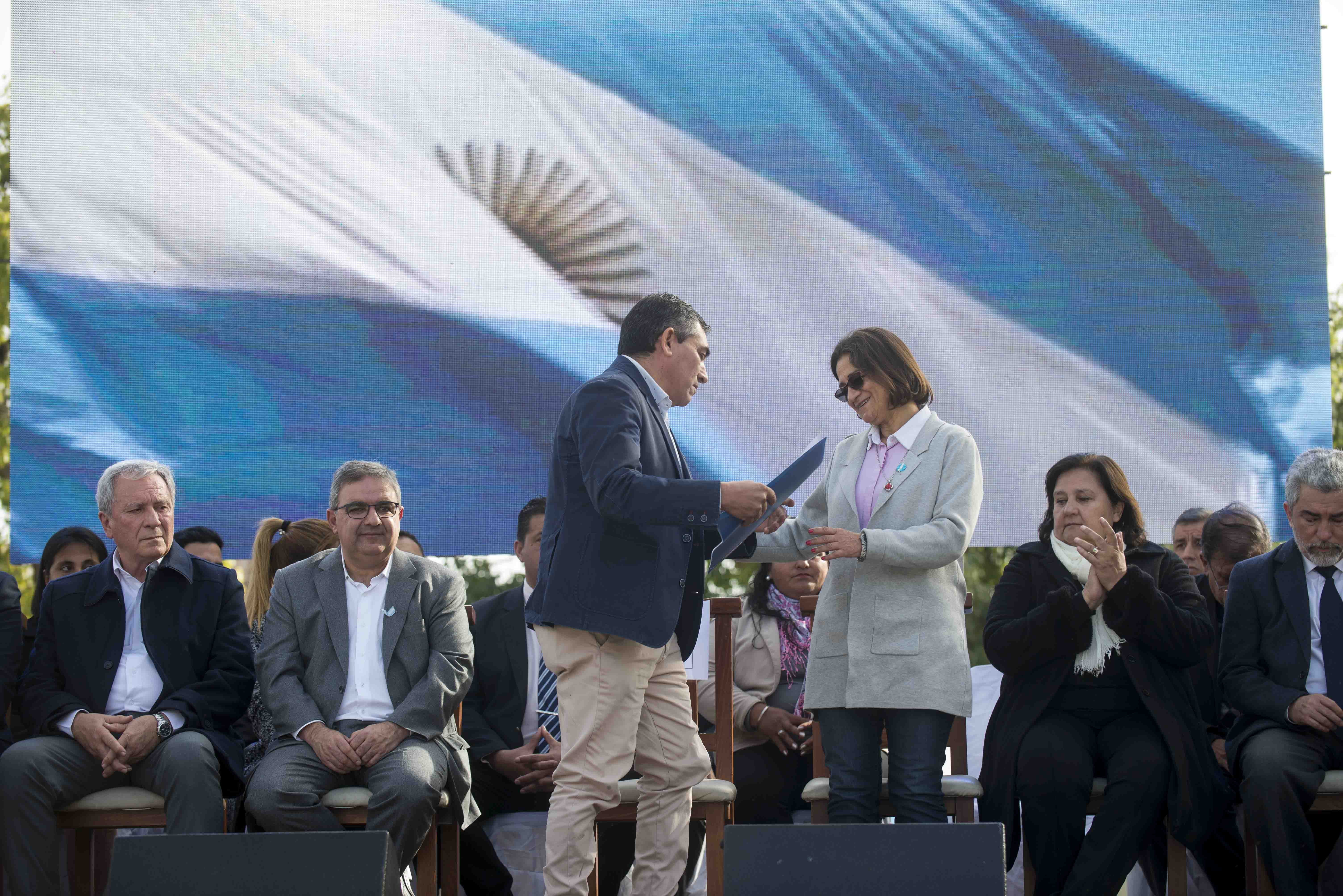 La jefa de Estado fue recibida por el Intendente Elpidio Guaraz, y estuvo acompañada por el Intendente de la Capital, Raúl Jalil; el ministro de Educación, Daniel Gutierrez; el ministro de Obras públicas, Rubén Dusso; la Senadora Nacional, Inés Blas; legisladores provinciales y funcionarios del Poder Ejecutivo.