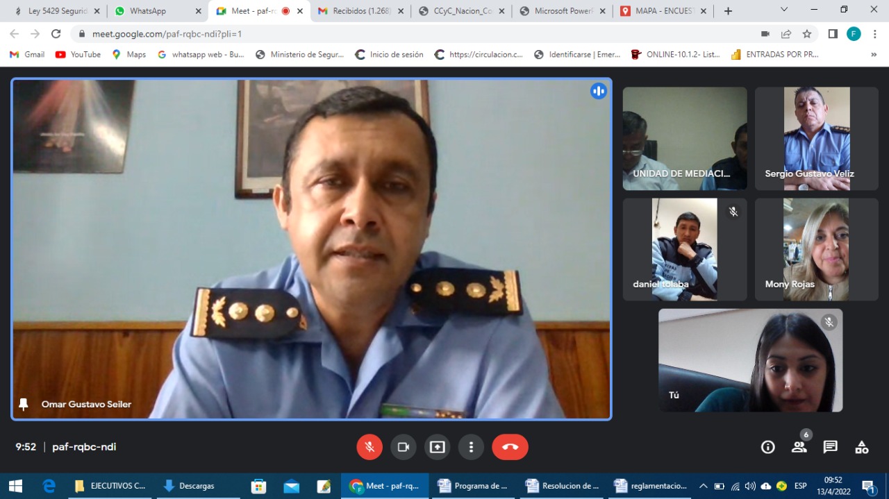 La Directora Provincial de Desarrollo Humano y Participación Ciudadana, Fabiola Segura, acompañada por el rector del (IESP) Instituto de Educación Policial, Gustavo Seiler, el subdirector del Servicio Penitenciario Provincial Prefecto; Sergio Veliz y la Lic. Mónica Rojas, mantuvo una reunión con el Crio. Gral. Sergio Carrizo y el titular de la Unidad de Mediación Policial, Crio. Mayor Martín Ortega. El Crio. Seiler y el Prefecto Veliz coincidieron en la importancia de contar con personal policial y del servicio penitenciario capacitados en el abordaje y gestión de conflictos en sus ámbitos de competencia.