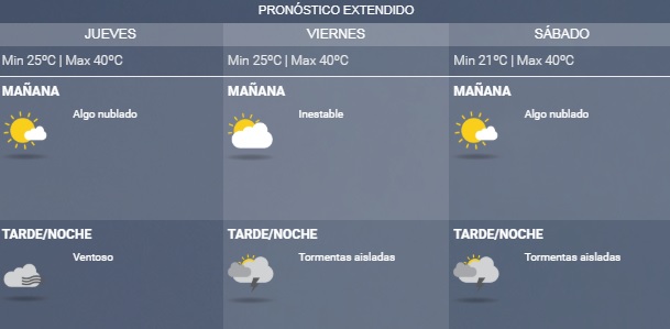 Las altas temperaturas continuarán en nuestra provincia por varios días. Según especifica el SMN, por lo menos hasta el día sábado el termómetro marcará como máxima 40 grados. Un infierno.