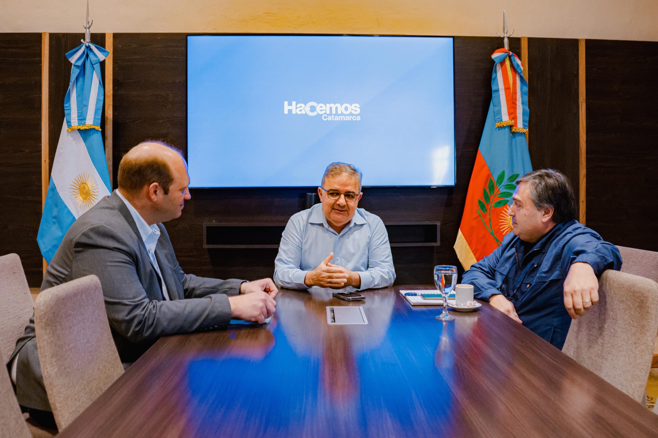 El gobernador Raúl Jalil junto al ministro de Hacienda y Obra Pública, Juan Marchetti, recibieron al ingeniero Roberto Bellido, responsable del Distrito 11 de Vialidad Nacional en Catamarca, para avanzar en una serie de obras viales estratégicas para la provincia.