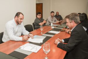 Luego se desarrolló un encuentro que tuvo lugar en el Ministerio de Inclusión Digital y Sistemas Productivos, el cual estuvo encabezado por el secretario de Producción y Tecnología Agropecuaria, Ing. Agr. Fernando Molina, junto al vicepresidente de SENASA, Nestor Osacar, el director nacional de Inocuidad y Calidad Agroalimentaria, Jorge Grant, y autoridades de dicho organismo encabezadas por el director del centro regional NOA SUR, Ing. Agr. Jose Luque y su equipo técnico.