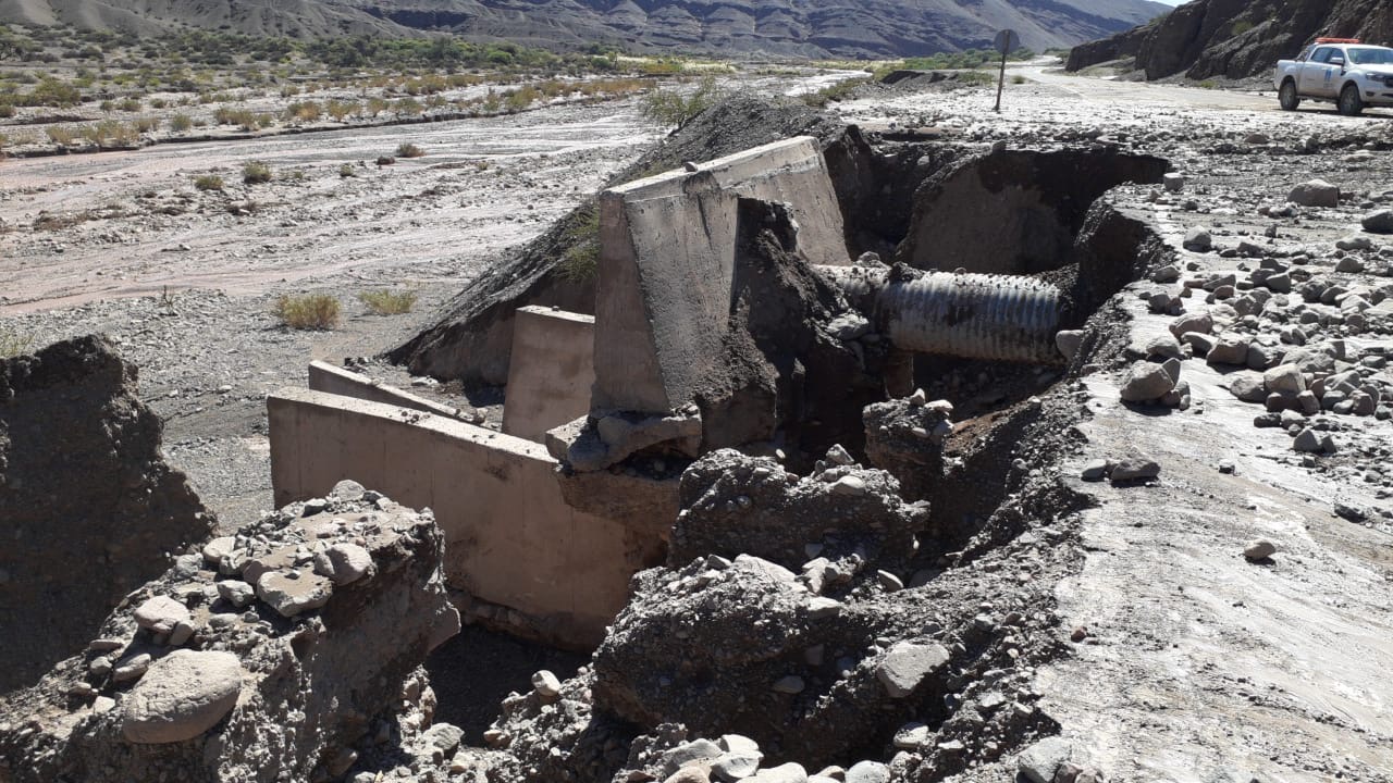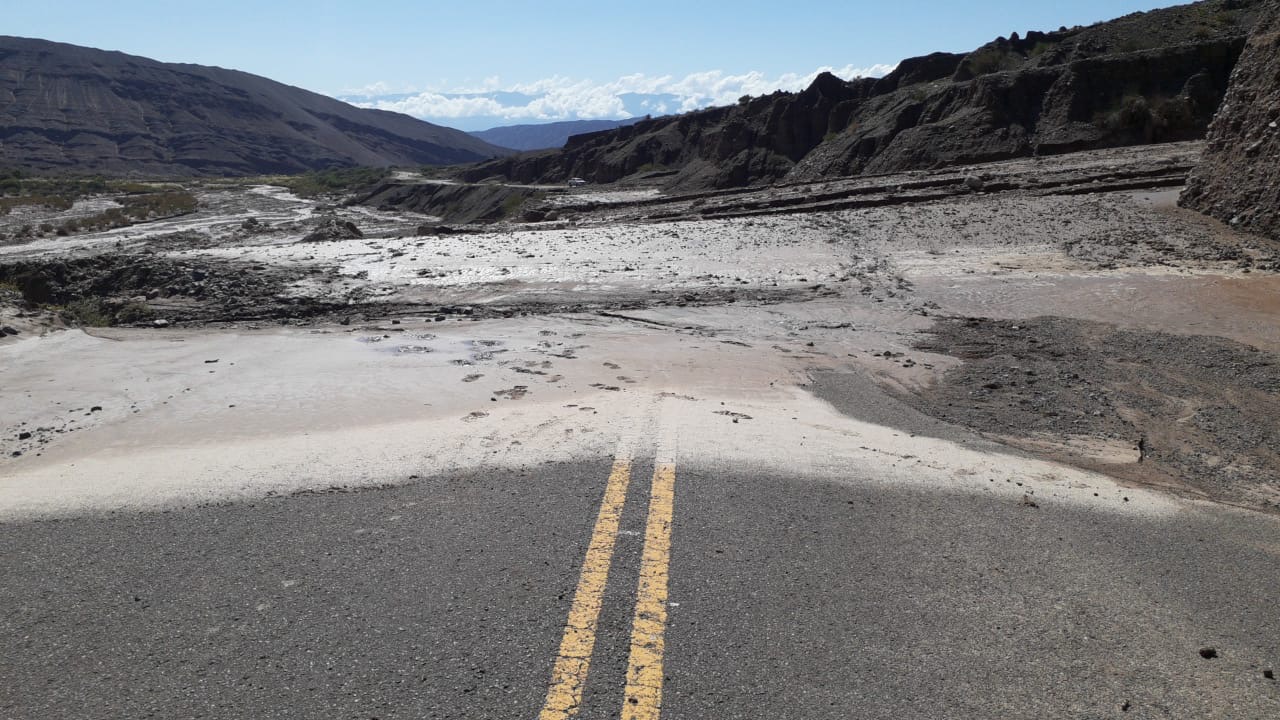 Vialidad Nacional informa que, la interrupción se debe a los daños producidos por la crecida de varios ríos y arroyos que depositaron importantes volúmenes de material aluvional en la calzada, como así por las profundas erosiones en banquinas.