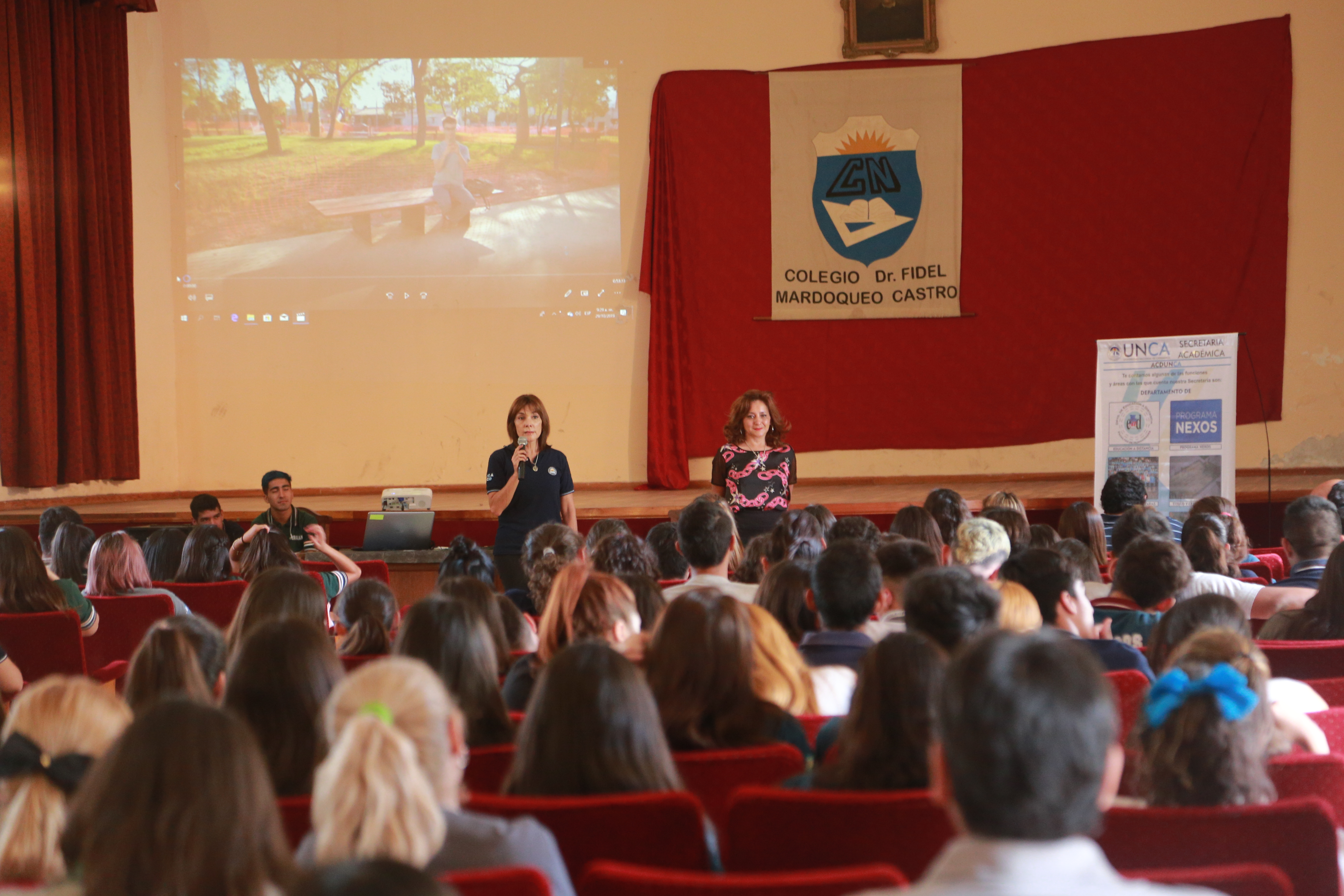 “Estuvimos en el Colegio Nacional brindando una charla de la que también participaron alumnos de la escuela Jorge Newbery. Estas jornadas de Nexos tienen el objetivo de difundir las carreras, además de las políticas de inclusión para garantizar el acceso, la permanencia y la terminalidad de las trayectorias académicas de los estudiantes. Estamos terminando el año y la mayoría de los alumnos están pensando en qué carrera elegir y a veces no saben la diversidad de ofertas de la UNCA”, concluyó.