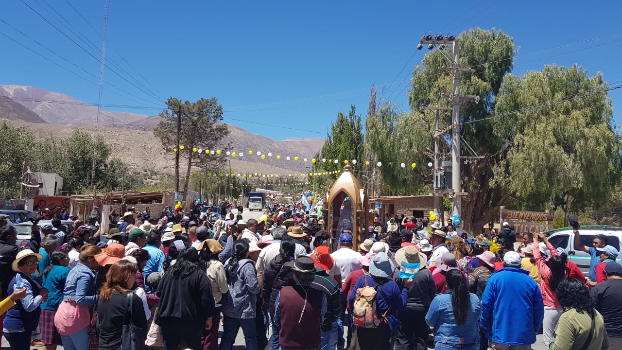 “Ellos han bajado con su imagen para recibirla en la entrada, donde eran como siete las imágenes. Aquí hay un rito muy lindo, cuando llega por primera vez una imagen le hacen el saludo, que tienen que agacharse tres veces con la Imagen para saludar. Esto fue en la entrada de Tilcara, y vinieron los que tocan los instrumentos de viento. La procesión duró como una hora, con la participación de mucha gente. Muy lindo todo”.
